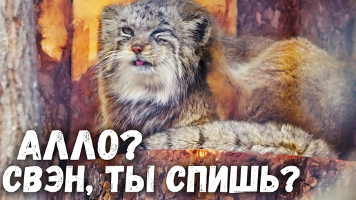 Манул Намика звонит по лапке Свэну, который постоянно спит. Ленинградский зоопарк
