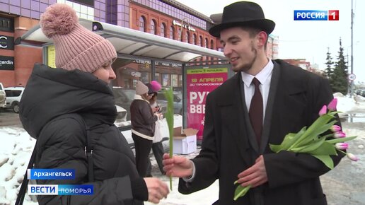 На нескольких остановках джентльмены в шляпах дарили женщинам тюльпаны
