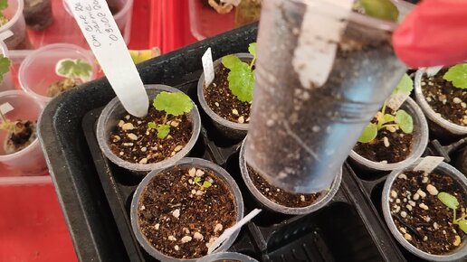 Укоренение черенков в кокосовых и торфяных таблетках и минераловатных пробках. Прошло две недели. И полив сеянцев. Месяц после посева.