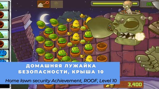 Plants vs zombies - Roof Level 10, Home lawn security Achievement, Roof cleaners, Wall nut First