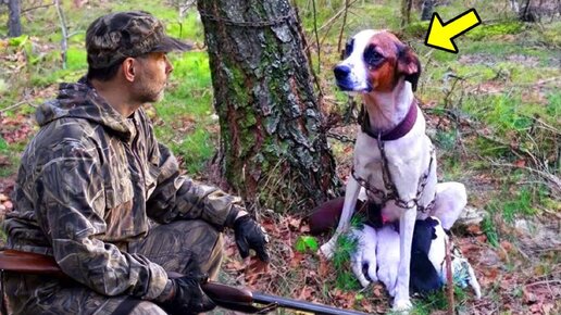 Охотник нашёл собаку с щенками, привязанными к дереву