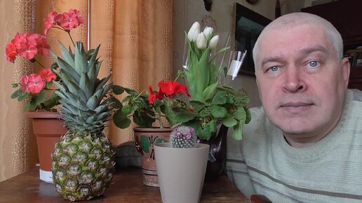 Сегодня 8 марта 2024 год. У меня цветут цветы, а на столе ананас