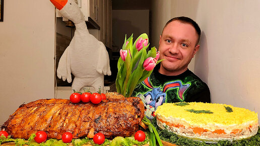 МУКБАНГ. ОБЖОР. САЛАТ МИМОЗА С ГОРБУШЕЙ, РЁБРЫШКИ ПИКАНТНЫЕ ЗАПЕЧЁННЫЕ. АСМР. С ПРАЗДНИКОМ ДЕВОЧКИ!