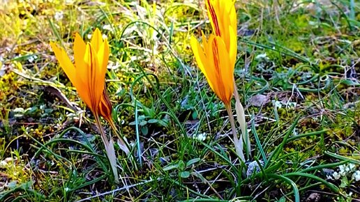 Распустившиеся крокусы в солнечную погоду !Новый Свет.