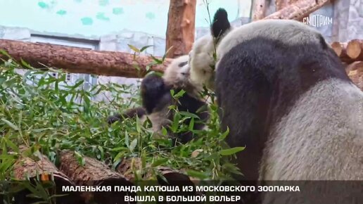 Панда Катюша вышла в большой вольер Московского зоопарка