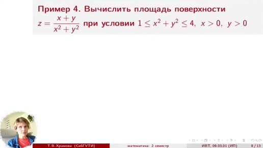 Вычисление площади поверхности. Пример