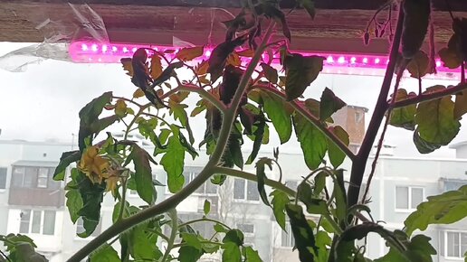 Высокорослые томаты на подоконнике в марте.Первый помидор