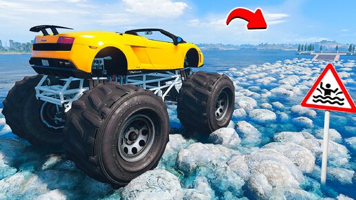 ПРОЕХАЛ ВОДНЫЕ КАМНИ на ГИГАНТСКОМ ЛАМБОРГИНИ БИГФУТ в ГТА 5 МОДЫ - ЭКСПЕРИМЕНТЫ в GTA 5 MODS