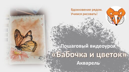 Пошаговый видеоурок: "Бабочка и цветок". Акварель.