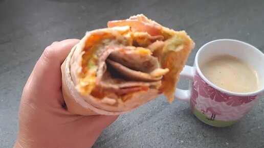 Шикарный Вкусный Завтрак за 5 минут Рол из Лаваша с яйцом, авокадо, ветчиной