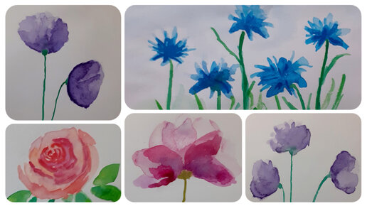 Простой способ нарисовать цветы акварелью