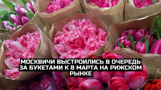 Москвичи выстроились в очередь за букетами к 8 Марта на Рижском рынке