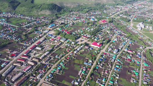 Село Бижбуляк Республика Башкортостан с высоты птичьего полета.