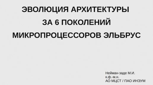 Эволюция архитектуры за 6 поколений микропроцессоров Эльбрус. Мурад Нейман-заде. МЦСТ. 21.08.2023
