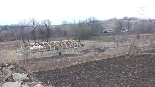 Натягиваем плёнку на теплицу. Мешает порывистый ветер, жена не смогла удержать