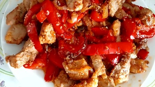 Мясо с болгарским перцем на сковороде