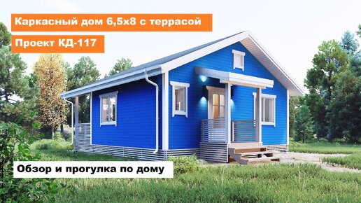 Уютный домик с террасой. Проект каркасного дома 8 на 9 м.