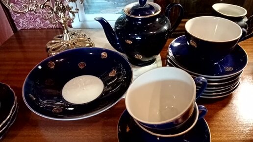 Чайный кобальтовый сервиз СССР ЛФЗ, простота и роскошь.