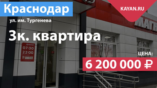 3 комнатная квартира 64.9 м² на Тургенева. ФМР Краснодар