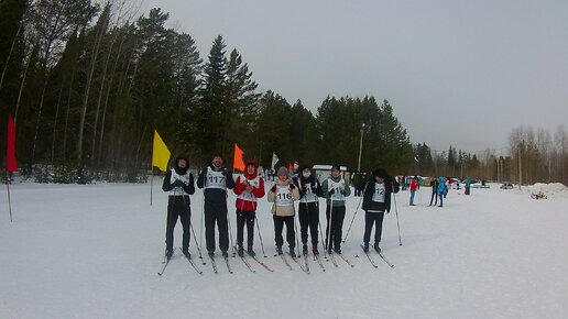 Мама катается на лыжах. Принимает участие в Спартакиаде, мы с дочей приехали погулять.
