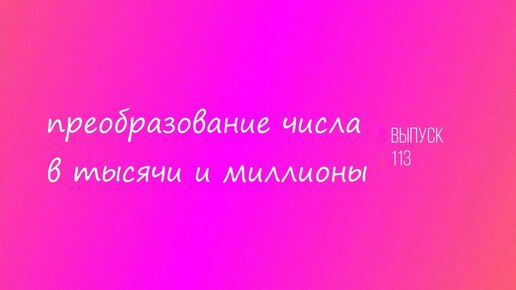 Выпуск 113. Преобразование числа в тысячи или миллионы