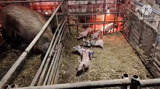 Поросята переезжают из станка в большую клетку. Завалили рыжего кабана