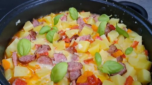 Когда Хочется Чего то По быстрому на ужин картошка с копчёной колбасой и сырным соусом