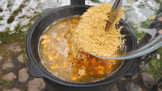 Показываю как приготовить сырный суп из семги в казане на костре(делюсь рецептом).