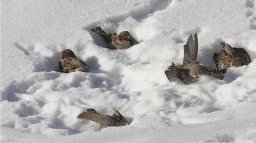 Что потеряли воробушки в сугробе? (Любопытные наблюдения за птицами)