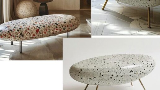 Мебель из терраццо. Пуф-терраццо "Pavone" от Владимира Чувашёва, искусственного интеллекта и ТЕРРАЦЦО.РФ