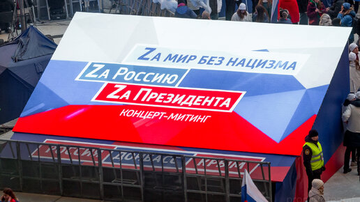 Мэр Москвы Сергей Собянин на концерт-митинге в «Лужниках», посвящённом Дню воссоединения Крыма с Россией. 18 марта 2022.
