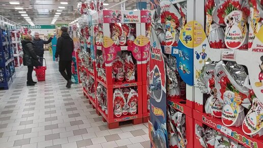 Ассортимент сладостей в итальянском супермаркете перед Пасхой