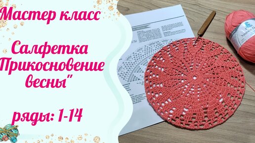 Мастер класс на салфетку крючком "прикосновение весны" ряды : 1-14