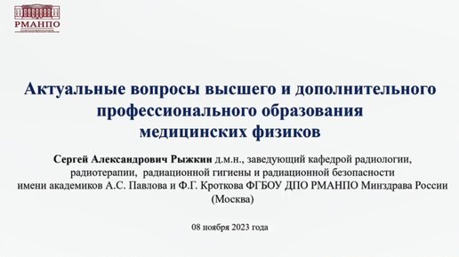 Актуальные вопросы высшего и дополнительного профессионального образования медицинских физиков