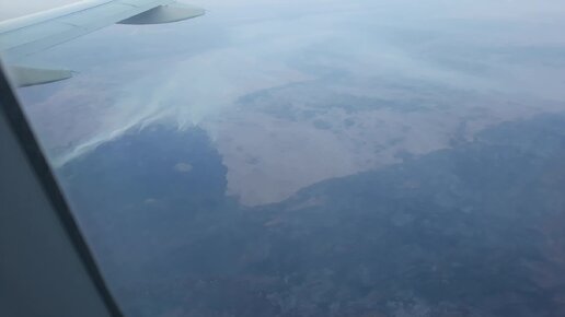 Как с самолёта выглядит степной пожар и выгоревшая земля.