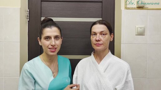 В данном случае я подготавливаю пациентку к комплексному омоложению глаз, лица и шеи.