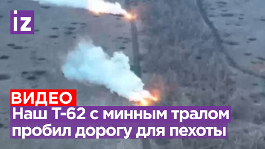 Живой пример выражения «прет, как танк»: наш Т-62 с минным тралом по заминированному полю пробил дорогу для бронетехники и пехоты