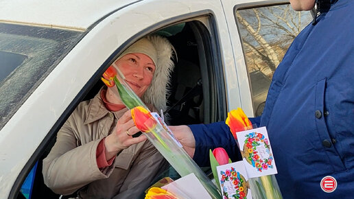 В Ревде и Дегтярске сотрудники ГИБДД и добровольцы дарили цветы женщинам за рулём