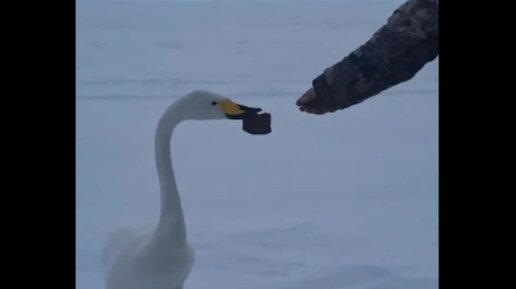 «Как цирковой!» На Сахалине лебедь развлекал рыбаков и туристов. Он провел несколько дней на берегу позволяя себя гладить и кормить.