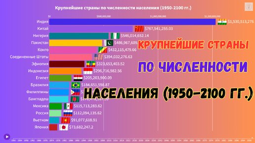 Крупнейшие страны по численности населения (1950-2100 гг.) #статистика #топ16статистика #топ16