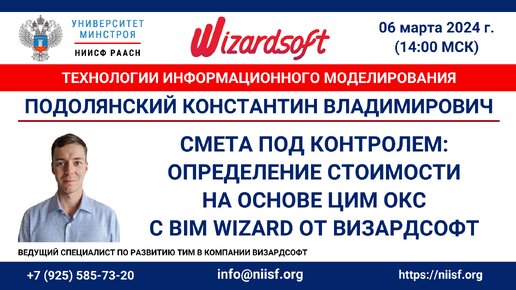 ВИДЕО. Подолянский К.В. Смета под контролем: Определение стоимости на основе ЦИМ ОКС с BIM WIZARD от ВИЗАРДСОФТ