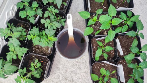 Чтобы рассада не вытягивалась и была крепкая и здоровая, поливаю с биогумусом