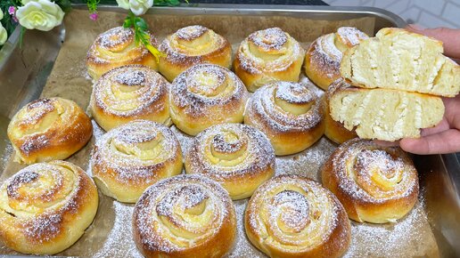 Наши любимые булочки к чаю. Булочки с творогом. Домашняя выпечка