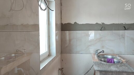Фартук и часть стены из крупноформатной плитки