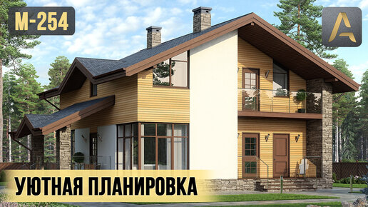 Эффектный дом с уютной планировкой. Проект дома с мансардой, террасой и балконом