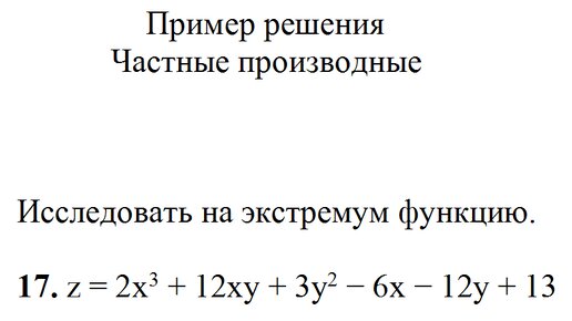 Исследовать на экстремум функцию z=2x^3+12xy+3y^2−6x−12y+13. Частные производные