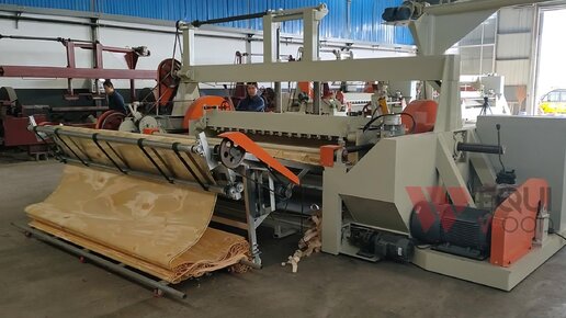 Лущильный станок для тонкого шпона с механическими шпинделями и укладчиком
