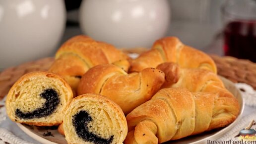 Мягкие круассанчики, теперь с маковой сладкой начинкой. Дрожжевые рогалики с маком