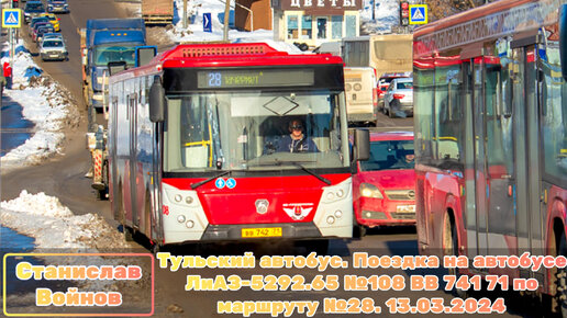 Тульский автобус. Поездка на автобусе ЛиАЗ-5292.65 №108 ВВ 742 71 по маршруту №28. 13.03.2024