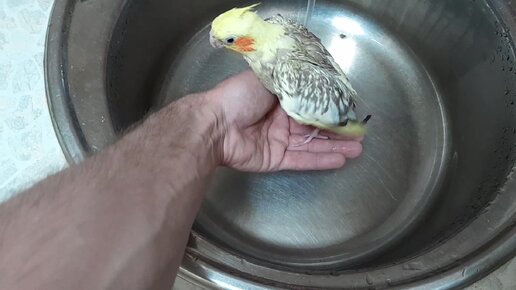 Попугай КСЮША купается в раковине)))